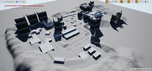 All of the materials and models have come in and at the correct scale. There are a few missing brushes, the normals on the displacements are screwed up, and none of the decals have come through (some of the buildings use decals for the windows), but it’s good enough for a reference. Once the remaster is done, the imported map and assets will be deleted to ensure they don’t accidentally make it into a build.